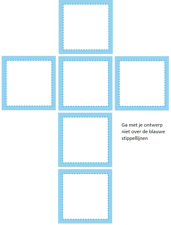 Gebruik de template 'dobbelsteenontwerp' en maak hierin jouw ontwerp. Sla het bestand op als .jpg .png .pdf of .eps